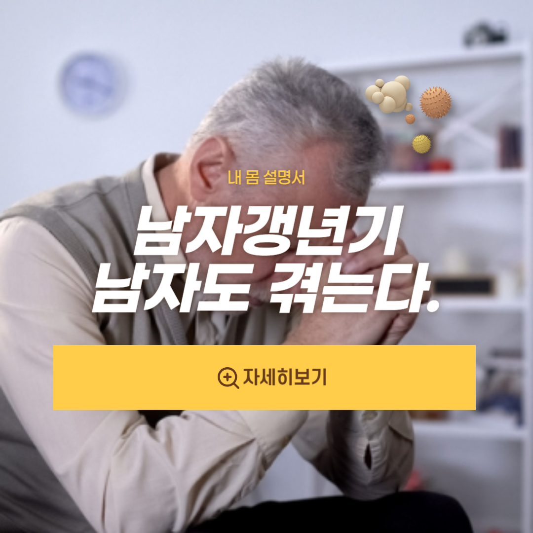 - 나이: 나이가 들면서 신체적인 변화가 일어나는 것은 필연적인 현상으로, 40대 후반부터 50대에 들어서며 호르몬 수준의 변화와 함께 생리적인 기능이 저하될 수 있습니다. 이는 남자 갱년기의 주요 원인 중 하나입니다.